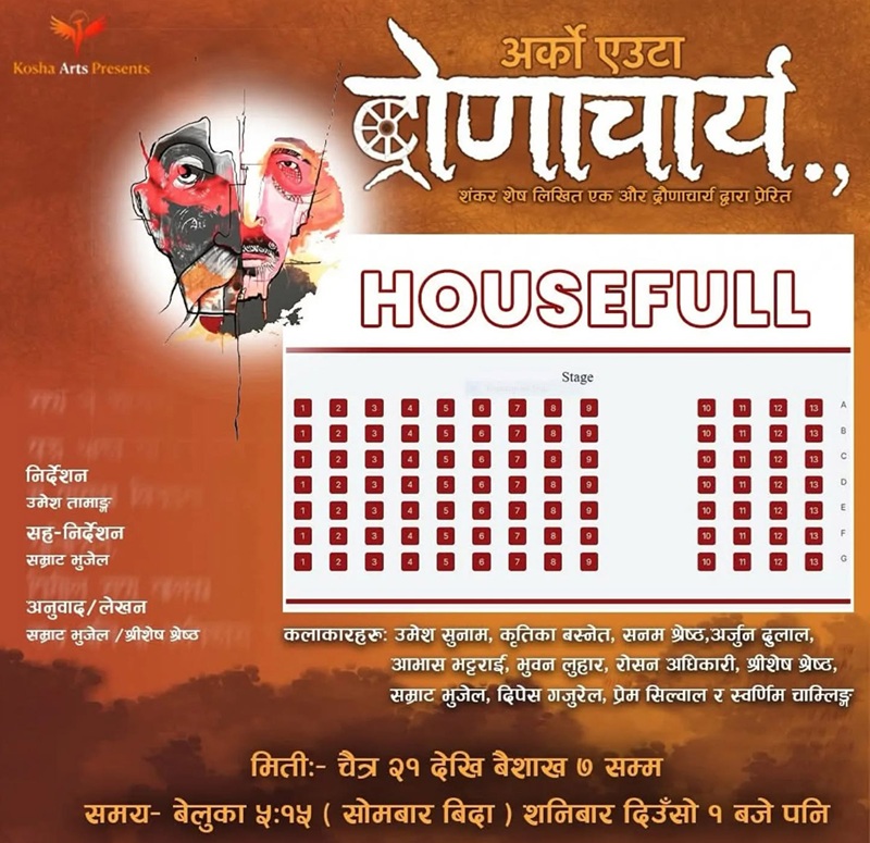अर्को एउटा द्रोणाचार्यको अधिकांश शो हाउसफूल, बैशाख ७ गतेसम्म मात्रै मञ्चन हुने